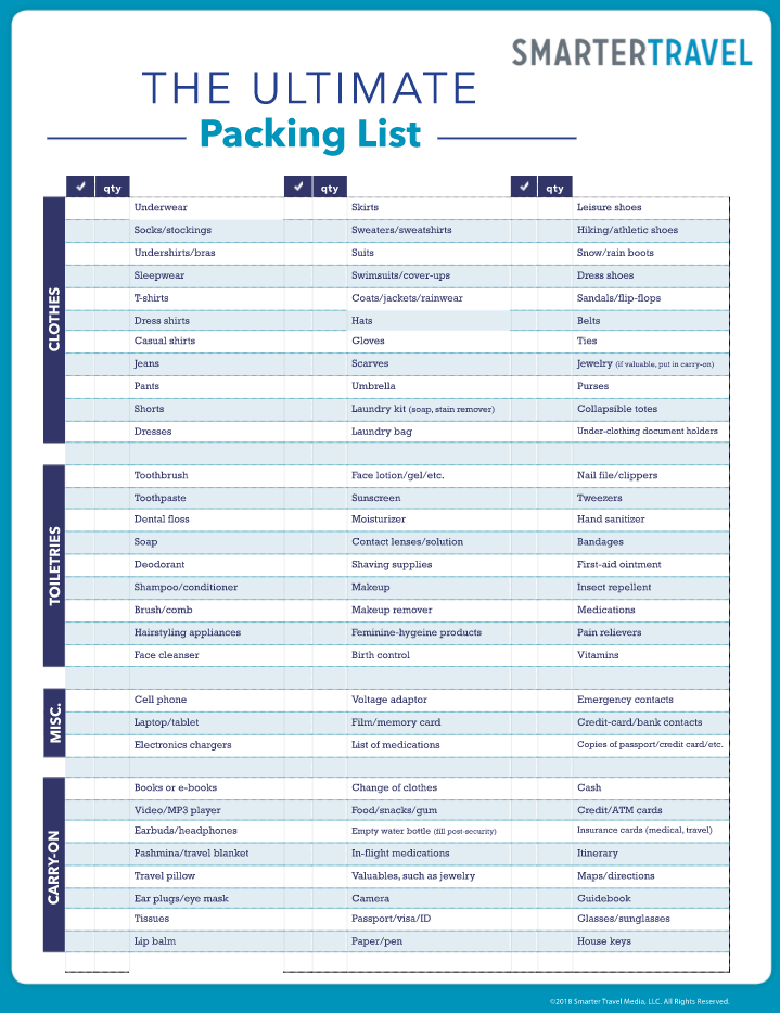 checklist smart trvel