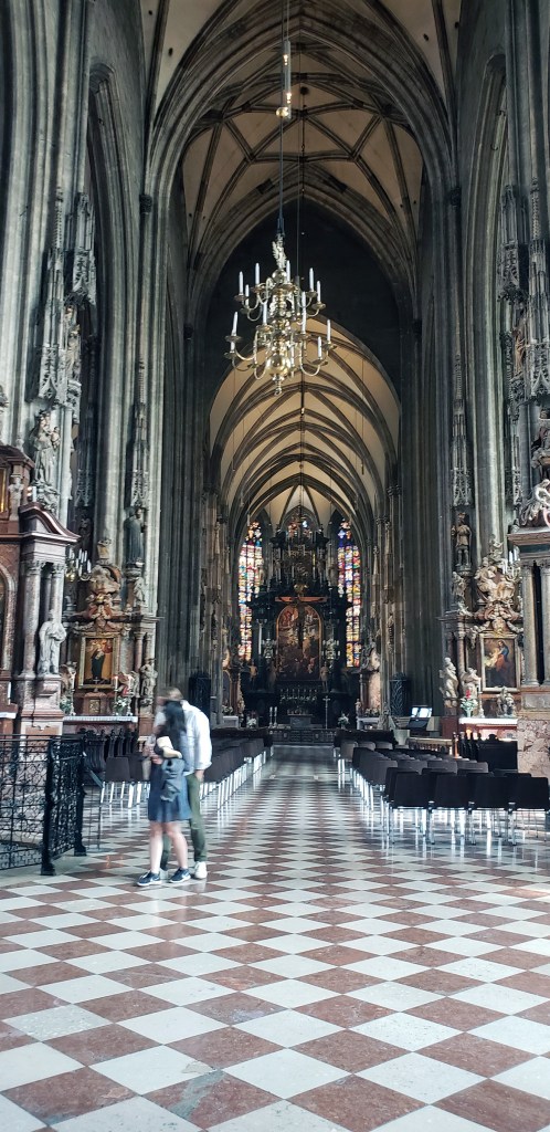 St. Stephen’s Cathedral was next up. Actually, it served as my reference point when making hotel reservations and when using public transportation. I’d planned to visit the cathedral before touring the Opera House, however, it was Sunday. The cathedral was closed for tours until after mass, though visitors could still enter for services.