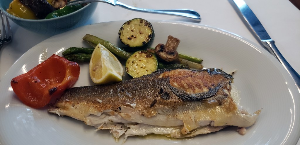 Food was good, though I could have done without the large veggie side dish. Loved the fish selection of the day. It was cooked nicely and was edible. However, I had to be careful as they didn’t remove the bones from the fish.