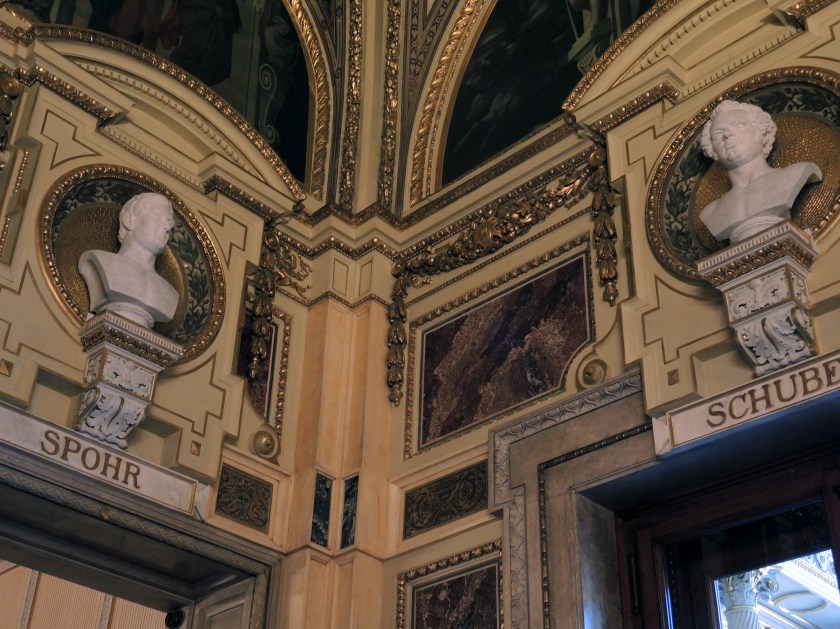 After the climb, the tour explored the highlights of the venue, including the Grand Staircase. Tea Salon, Marble Hall, Schwind Foyer, Gustav Mahler Hall.