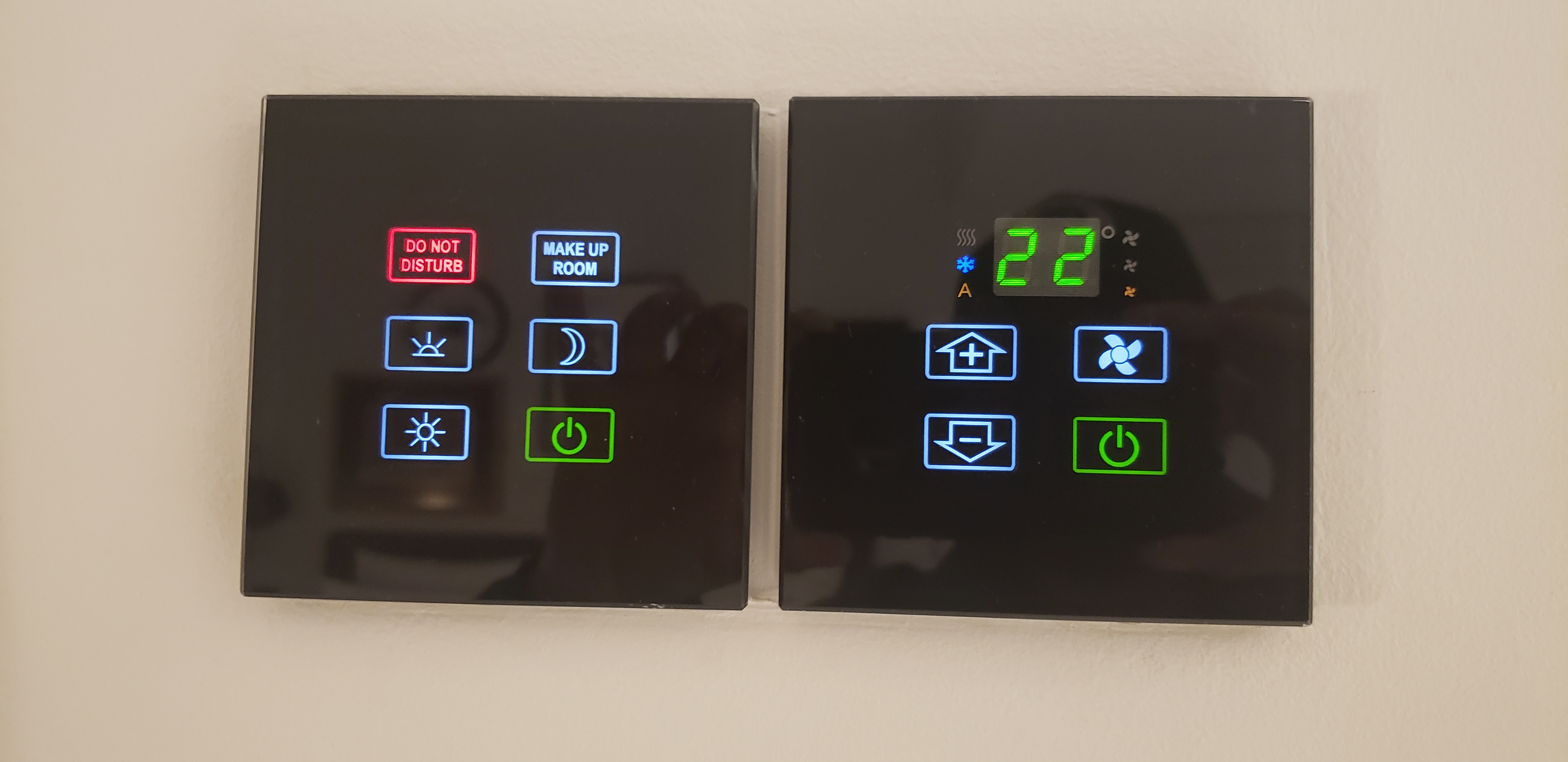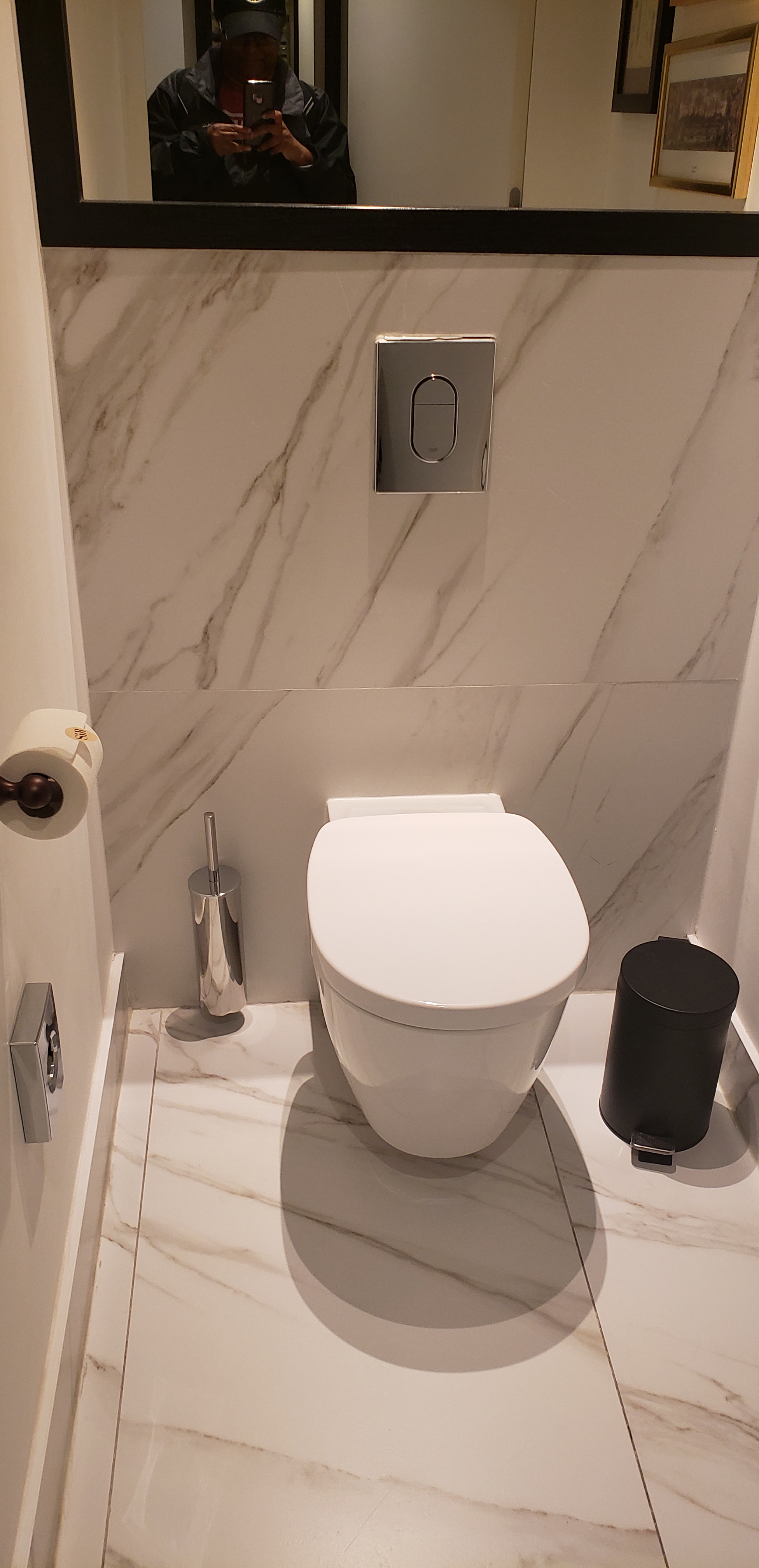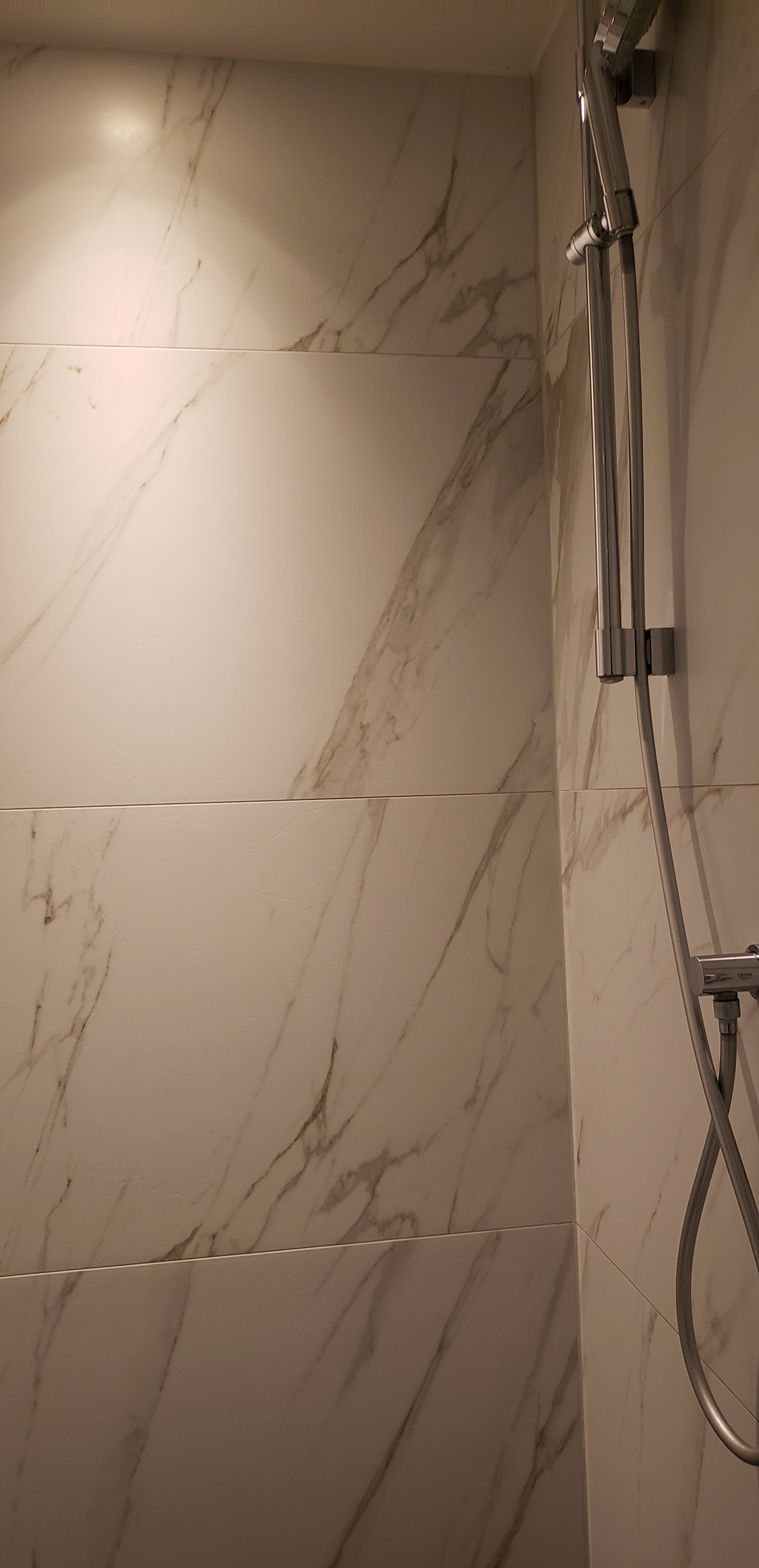 The motion-sensor lights in the toilet room kept going off while I was in there, and the shower door didn’t close all the way, so the light stayed on a lot longer than usual.