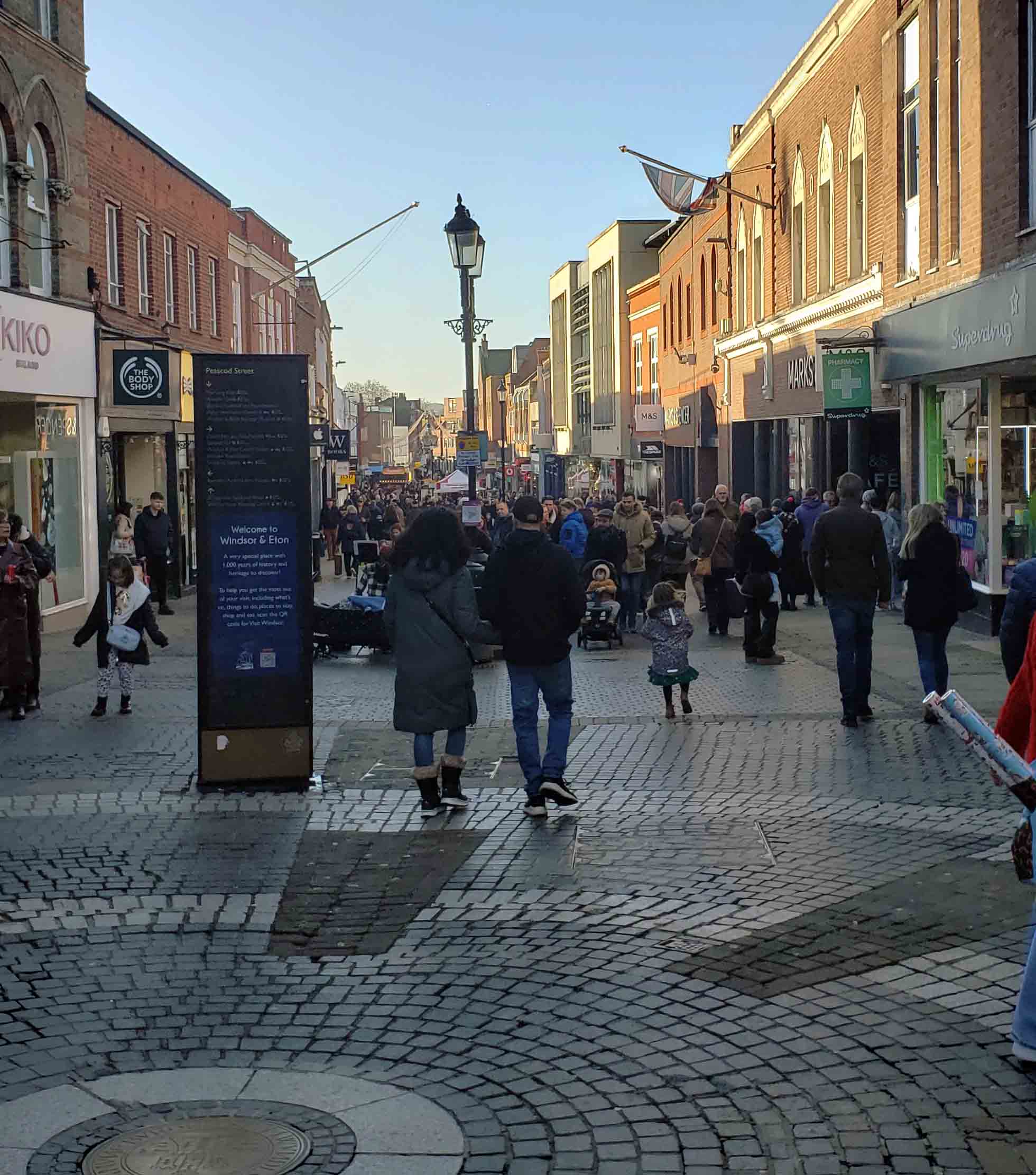 I ventured into the town’s shopping district to get a bit of Christmas shopping done. Windsor offers a delightful mix of high-street brands and unique boutiques. Just a short stroll from the castle is Peascod Street. The pedestrian area is lined with an array of independent shops and boutiques.